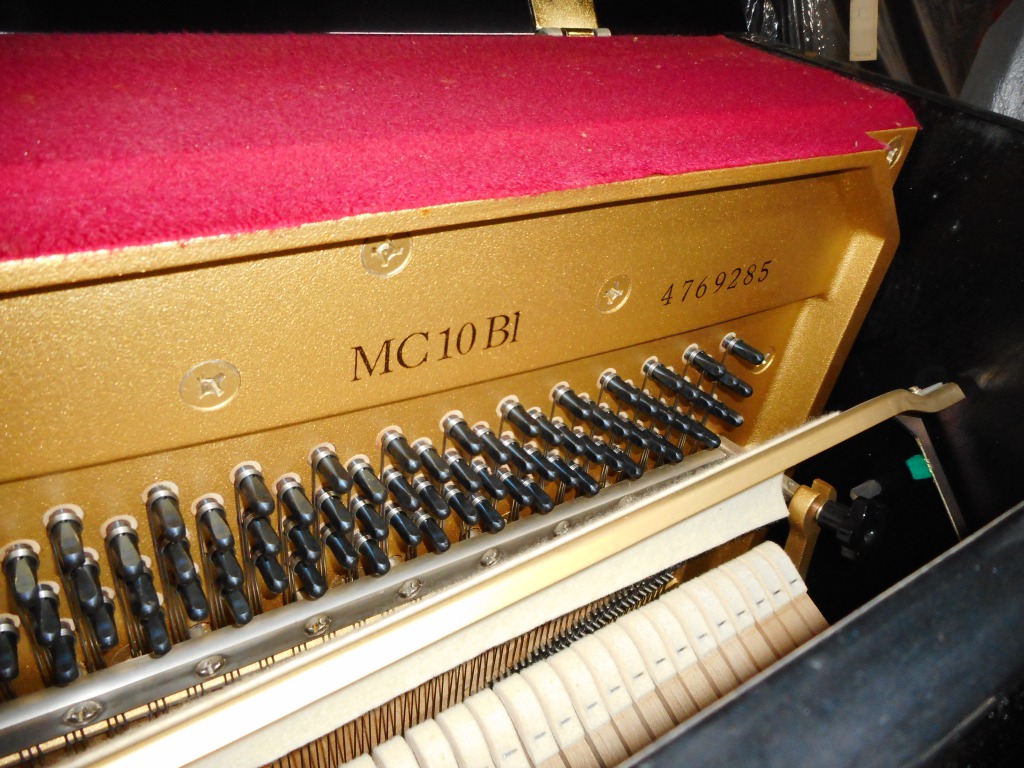 このピアノは、日経ピアノ会社のベトナム工場で日本人監視のもと外装を全塗装しております。外観は新品同様です。ピアノ内部に関しては低音弦(巻線)を全て新品に交換しています。中級者モデルです。